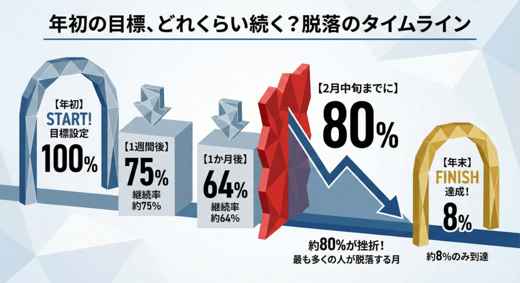 さらに、多くの人が脱落するのは「年末」ではなく、2月前後です。